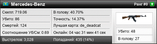 | de_deadcat | 23 | 2.88 | 0.99 | 1 | 16 | 00:23:14 | 29.03.2016 | |