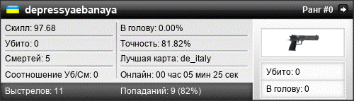 | 10.06.2024 @ 00:28 - 00:29 | de_cup | 00:00:41 | 0 | 1 | 0 | 0.00% | 0.00% | 97.68 |