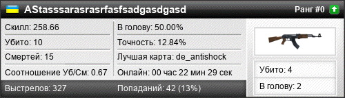 | de_antishock | 9 | 0.90 | 0.59 | 1 | 13 | 00:15:10 | 17.06.2024 | |