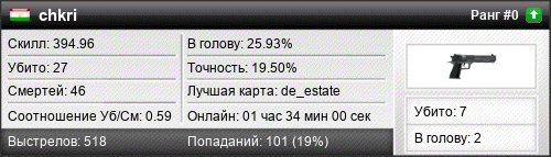 | 05.08.2024 @ 15:52 - 16:31 | de_estate | 00:39:12 | 16 | 27 | 6 | 37.50% | 19.23% | 349.97 |