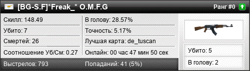 | de_mirage | 1 | 0.20 | 0.14 | 1 | 5 | 00:07:11 | 20.01.2016 | |