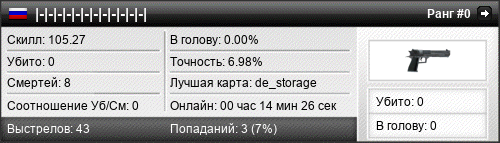 | 25.08.2024 @ 11:30 - 11:30 | de_nuke | 00:00:08 | 0 | 0 | 0 | 0.00% | 0.00% | 105.27 |