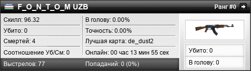 | de_dust2 | 0 | 0.00 | 0.00 | 1 | 2 | 00:02:02 | 26.09.2024 | |