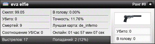 | de_mirage | 0 | 0.00 | 0.00 | 1 | 11 | 00:10:48 | 22.08.2025 | |