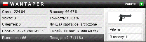 | de_arcticzone | 3 | 0.50 | 0.41 | 2 | 6 | 00:07:23 | 09.11.2024 | |