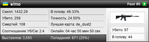 de_westwood | 27 | 2.08 | 0.77 | 2 | 31 | 00:35:14 | 01.02.2025 |