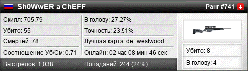 Arctic Warfare Police 6 0 2 33.33% 50.00% 2.33 1K