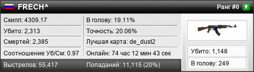 de_dust2 | 104 | 1.24 | 0.62 | 13 | 140 | 02:47:26 | 16.05.2025 |
