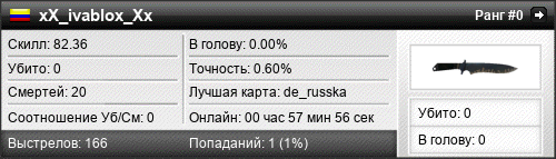 | 10.03.2025 @ 21:31 - 21:53 | de_hydralab | 00:22:12 | 0 | 8 | 0 | 0.00% | 1.14% | 82.48 |