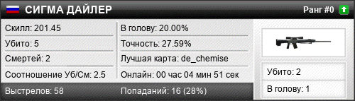 AK-47 1 0 0 0.00% 13.33% 30.00 106