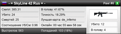 | 23.03.2025 @ 03:08 - 03:16 | de_inferno | 00:08:33 | 4 | 5 | 2 | 50.00% | 25.45% | 122.80 |