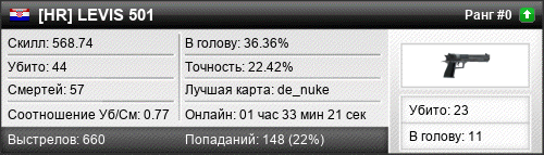 | 17.05.2025 @ 19:05 - 19:07 | de_colier | 00:02:17 | 0 | 1 | 0 | 0.00% | 0.00% | 568.74 |