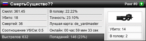 | de_yardmaster | 8 | 0.53 | 0.25 | 1 | 19 | 00:31:38 | 25.03.2025 | |