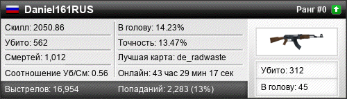 de_dust2 | 19 | 0.68 | 0.28 | 7 | 52 | 01:07:19 | 12.04.2025 |