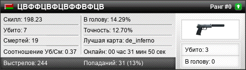 | de_inferno | 7 | 0.58 | 0.36 | 1 | 15 | 00:19:39 | 28.03.2025 | |