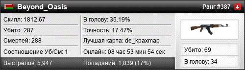AK-47 69 88 34 49.28% 11.97% 26.88 9K
