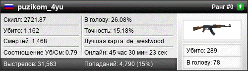 de_dust2 | 140 | 0.89 | 0.47 | 17 | 286 | 04:55:56 | 01.07.2025 |