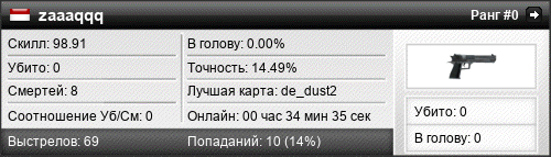 | de_dust2 | 0 | 0.00 | 0.00 | 1 | 21 | 00:16:37 | 11.06.2025 | |