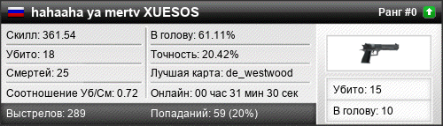 | de_westwood | 9 | 0.56 | 0.52 | 1 | 18 | 00:17:19 | 07.08.2025 | |