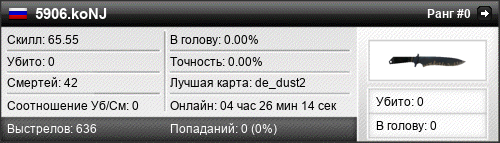 | 19.01.2026 @ 10:55 - 11:31 | de_fog | 00:35:40 | 0 | 6 | 0 | 0.00% | 0.00% | 65.55 |