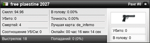 19.08.2025 @ 20:14 - 20:15 | de_museum | 00:00:19 | 0 | 0 | 0 | 0.00% | 0.00% | 94.96 ![]() |