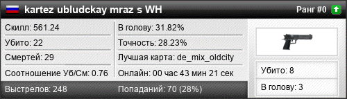 | de_mix_oldcity | 14 | 1.17 | 0.86 | 1 | 14 | 00:16:18 | 11.08.2025 | |