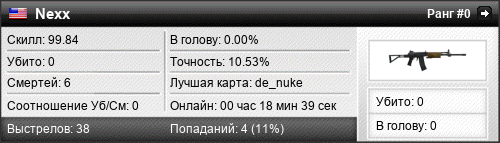 de_nuke | 0 | 0.00 | 0.00 | 0 | 7 | 00:06:19 | 01.01.1970 |