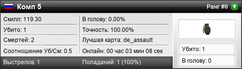 | de_assault | 1 | 1.00 | 0.71 | 1 | 2 | 00:01:25 | 28.10.2025 | |