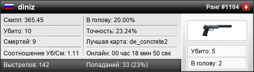 | 04.11.2025 @ 20:35 - 20:43 | de_concrete2 | 00:07:42 | 6 | 4 | 2 | 33.33% | 25.37% | 306.60 |