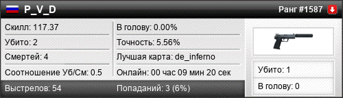 | de_inferno | 1 | 0.50 | 0.27 | 1 | 4 | 00:03:44 | 15.11.2025 | |