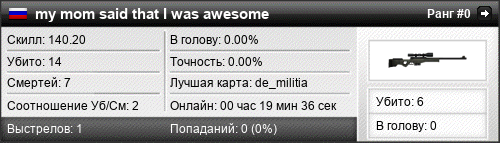 | de_militia | 14 | 2.00 | 0.71 | 1 | 12 | 00:19:36 | 26.10.2015 | |