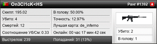 | de_inferno | 3 | 0.33 | 0.31 | 1 | 11 | 00:09:35 | 01.12.2025 | |