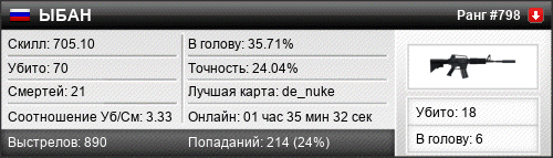 | 07.12.2025 @ 17:11 - 17:32 | de_azoic | 00:21:15 | 18 | 7 | 6 | 33.33% | 29.67% | 460.36 |
