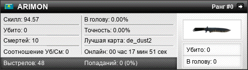 | de_dust2 | 0 | 0.00 | 0.00 | 1 | 5 | 00:06:21 | 12.12.2025 | |