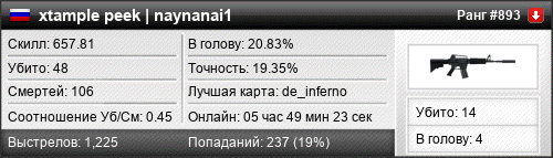 | de_scud | 6 | 0.43 | 0.23 | 1 | 17 | 00:25:53 | 25.12.2025 | |