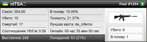 | de_inferno | 10 | 0.71 | 0.31 | 2 | 18 | 00:32:21 | 23.12.2025 | |