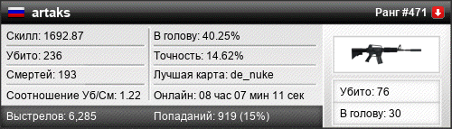 | de_dust2 | 15 | 0.79 | 0.43 | 2 | 26 | 00:34:47 | 28.12.2025 | |