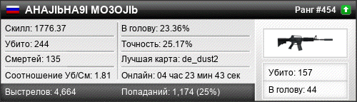 26.12.2025 @ 00:54 - 03:14 de_inferno 02:19:20 112 68 24 21.43% 24.74% 1205.69 Разница: +1105.69