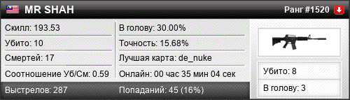 | de_nuke | 10 | 2.50 | 1.02 | 1 | 11 | 00:09:48 | 27.12.2025 | |