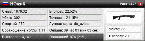 | de_metrostation | 13 | 1.18 | 0.63 | 1 | 13 | 00:20:44 | 29.12.2025 | |