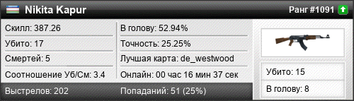 | de_westwood | 17 | 3.40 | 1.03 | 2 | 11 | 00:16:29 | 05.01.2026 | |