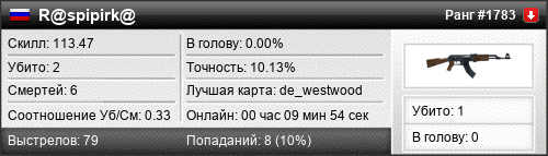 | de_westwood | 2 | 0.40 | 0.22 | 1 | 9 | 00:09:08 | 30.12.2025 | |