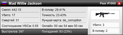 | de_terror | 6 | 0.46 | 0.34 | 1 | 16 | 00:17:33 | 31.12.2025 | |