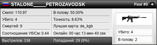 | de_kgb | 4 | 0.57 | 0.38 | 1 | 8 | 00:10:30 | 26.10.2015 | |