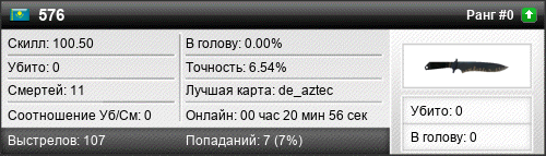 | 01.02.2016 @ 07:32 - 07:33 | de_aztec | 00:00:58 | 0 | 1 | 0 | 0.00% | 0.00% | 99.85 |