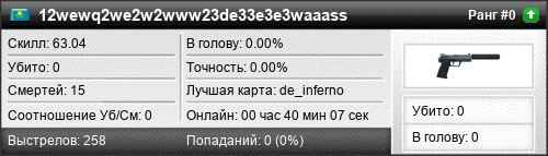 | de_nuke | 0 | 0.00 | 0.00 | 1 | 16 | 00:25:06 | 03.02.2016 | |