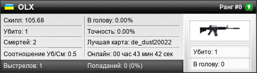 | 07.02.2016 @ 18:37 - 18:40 | de_dust20022 | 00:02:40 | 1 | 2 | 0 | 0.00% | 0.00% | 103.68 |