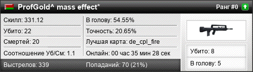 | de_cpl_fire | 9 | 3.00 | 1.62 | 1 | 4 | 00:05:33 | 09.02.2016 | |